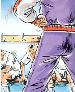 a week of tough practices, the day of the first match finally arrived. In the locker room, the coach was going over