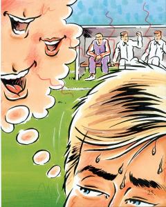 the big game was ready to begin. Bob joined several other players on the bench. Unfortunately, the first half started badly