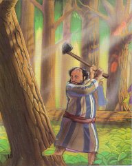 Then, Jimmy, the three brothers agreed to help Noah build the ark. Shem, Japheth and Ham along with Noah started to cut down large trees. They used the trees to make the huge ark. They started early every morning and worked until night fell. The work was hard, but they had to do it because God had said that soon the rains would begin.