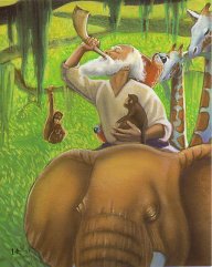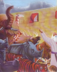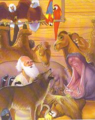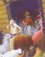 There were elephants, tigers, monkeys, foxes, elk, giraffes, buffalos, badgers, snakes, rodents, birds and insects. All the animals arrived in pairs according to God's plan.