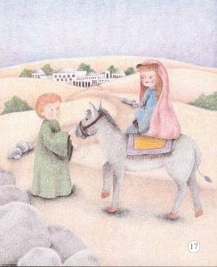 Baby Jesus. There is Joseph walking beside her. He must have felt sorry for Mary. They both knew, though, that God was pleased